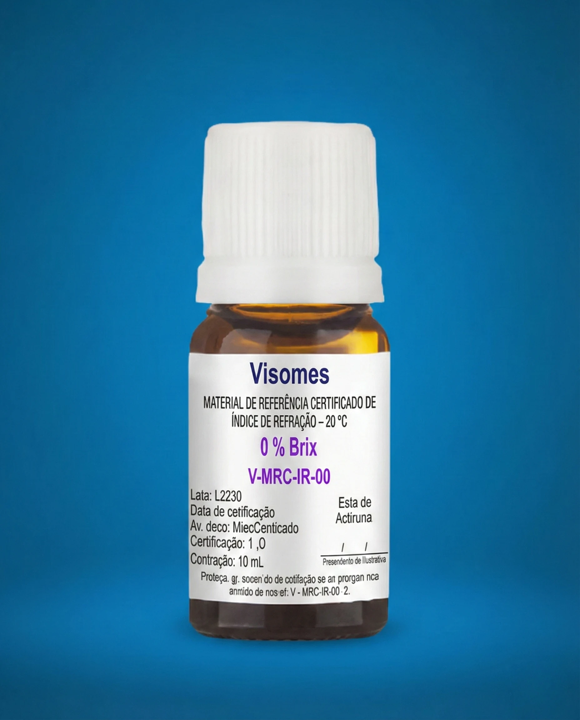 MATERIAL DE REFERÊNCIA CERTIFICADO (MRC) DE ÍNDICE DE REFRAÇÃO – 0 % BRIX – CONF. PROCEDIMENTO ILV-447 – FRASCO DE 10 ML LOTE: L0832 VALIDADE: 15/10/2026