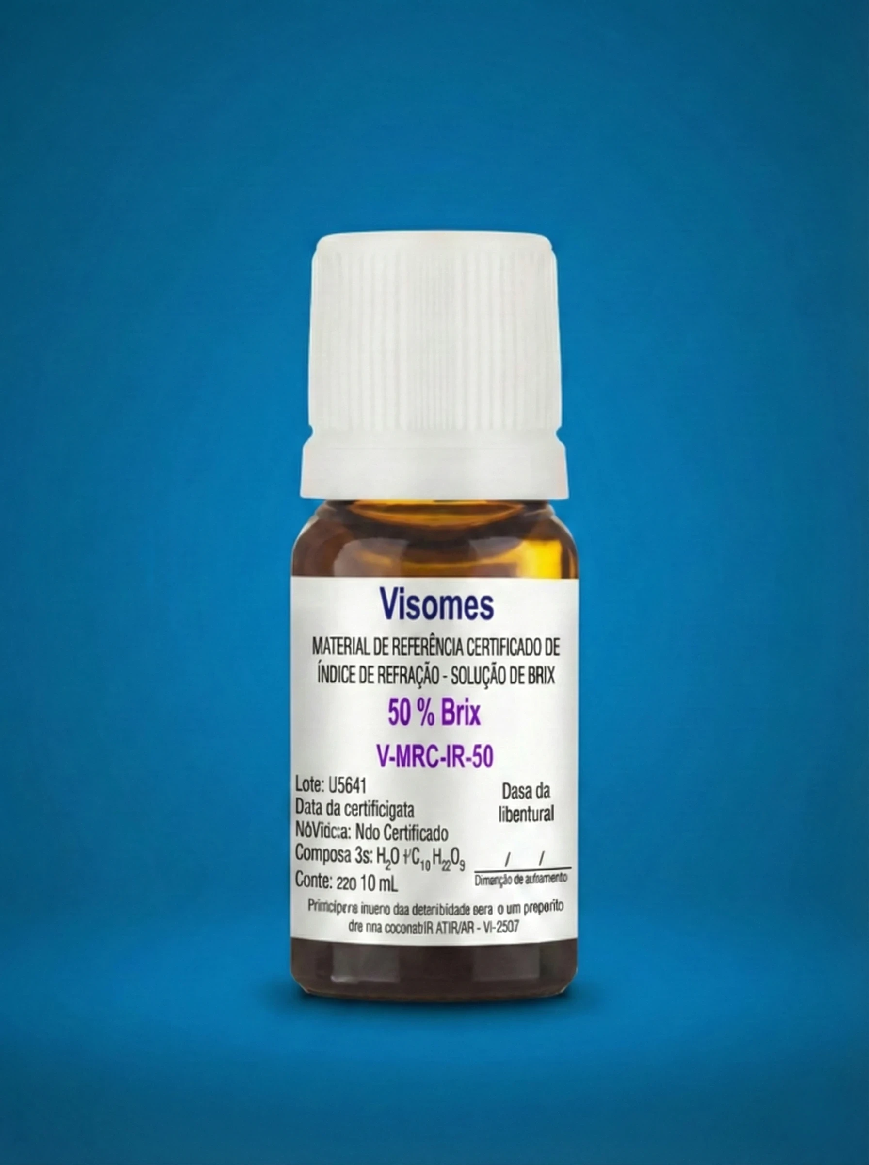 MATERIAL DE REFERÊNCIA CERTIFICADO (MRC) DE ÍNDICE DE REFRAÇÃO – 50 % BRIX – CONF. PROCEDIMENTO ILV-447 – FRASCO DE 10 ML LOTE: L0816 VALIDADE: 10/07/2026